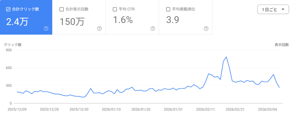 システム上、過去90日間のデータしか表示されませんが、3ヶ月で約24,000回閲覧されています。